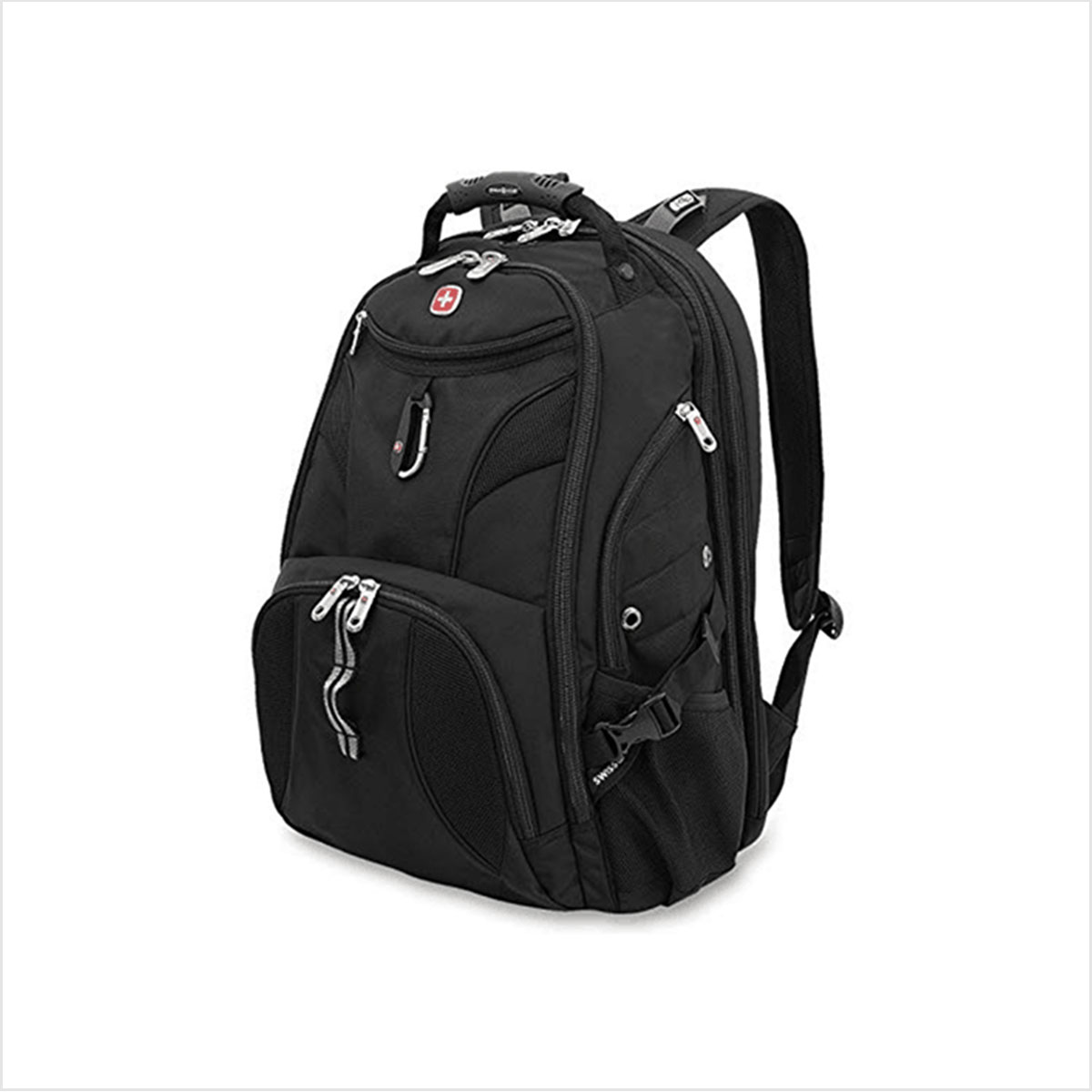 Durable tech fabric and a water-resistant PVC coating define a rugged backpack trimmed with Tuscan full-grain leather.